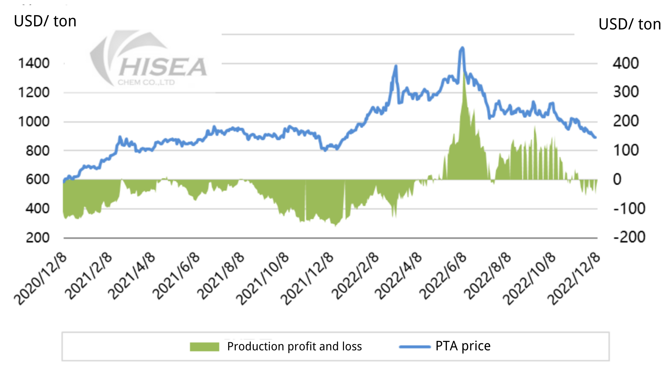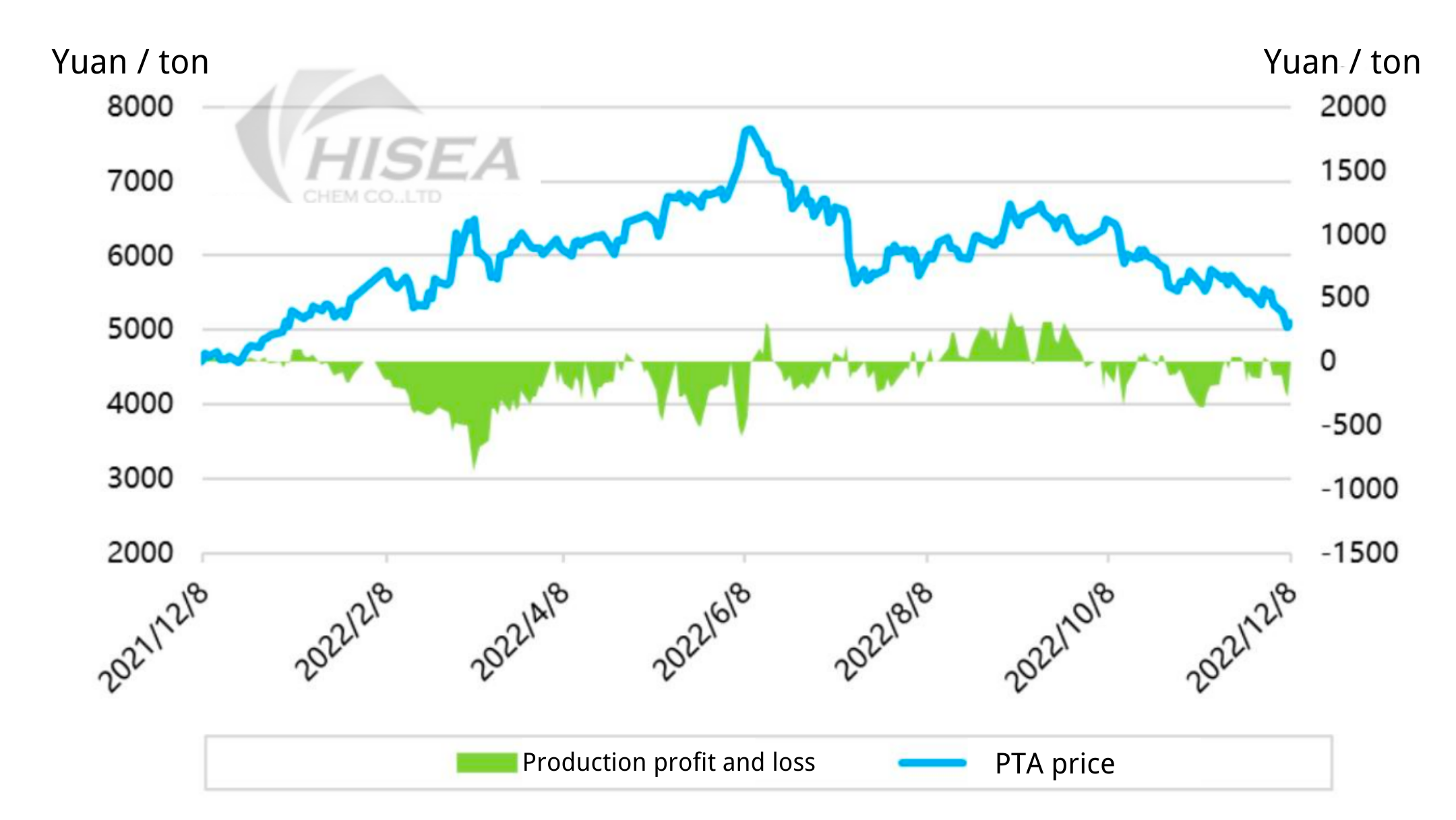 A unidade de 350.000 toneladas de Chemical Fiber 1# foi reiniciada para operação de carga total em 7 de dezembro, conforme planejado, após a revisão da unidade no início de novembro;A nova planta de 2,5 milhões de toneladas da Weilian Chemical ainda está em comissionamento, e a nova PTA de 2,5 milhões de toneladas da Tongkun Jiatong Petrochemical O comissionamento do dispositivo foi adiado.No geral, a oferta de PTA manteve-se baixa no período (20221202-1208), com pouca variação.